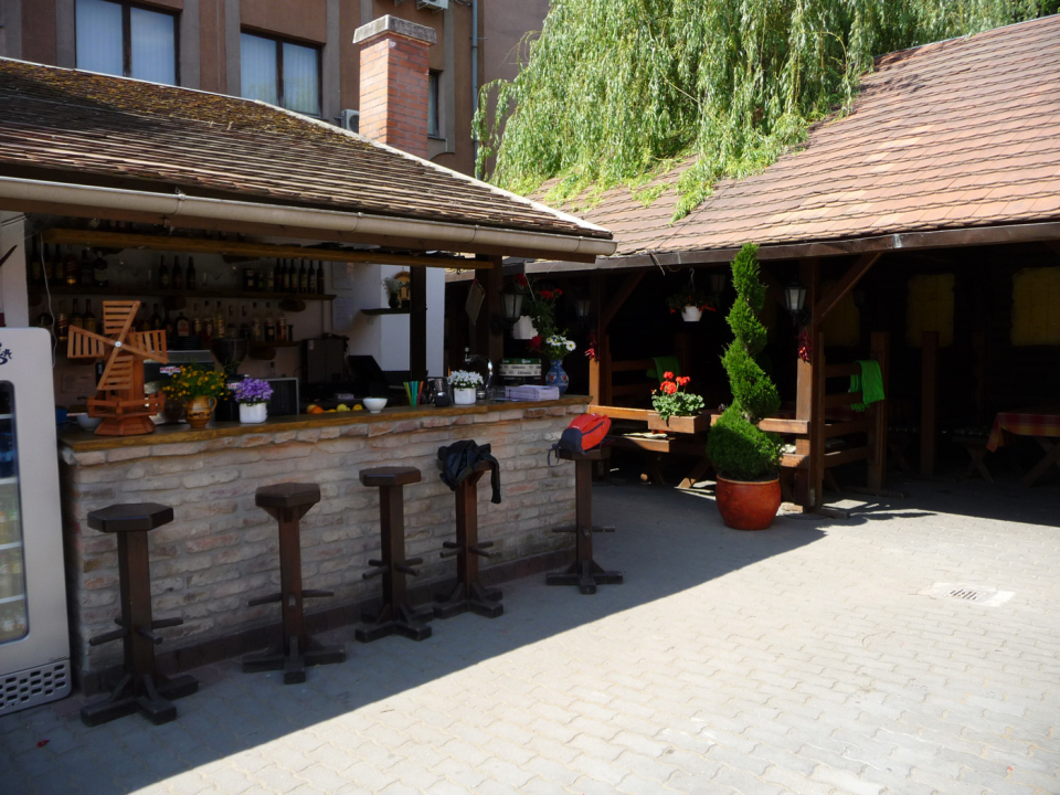 A kerthelyiség a magyar paraszti hagyományokat felidézve különleges hatással van az ide látogatókra. A falakon korabeli paraszti szerszámok és a sok piros muskátli udvarház jellegűvé varázsolja. A pincerészben 150m2-en található angol PUB, mely hamisítatlan angolszász hangulatot áraszt, hihetetlen ötletességgel, a vendégek nagy megelégedésére.